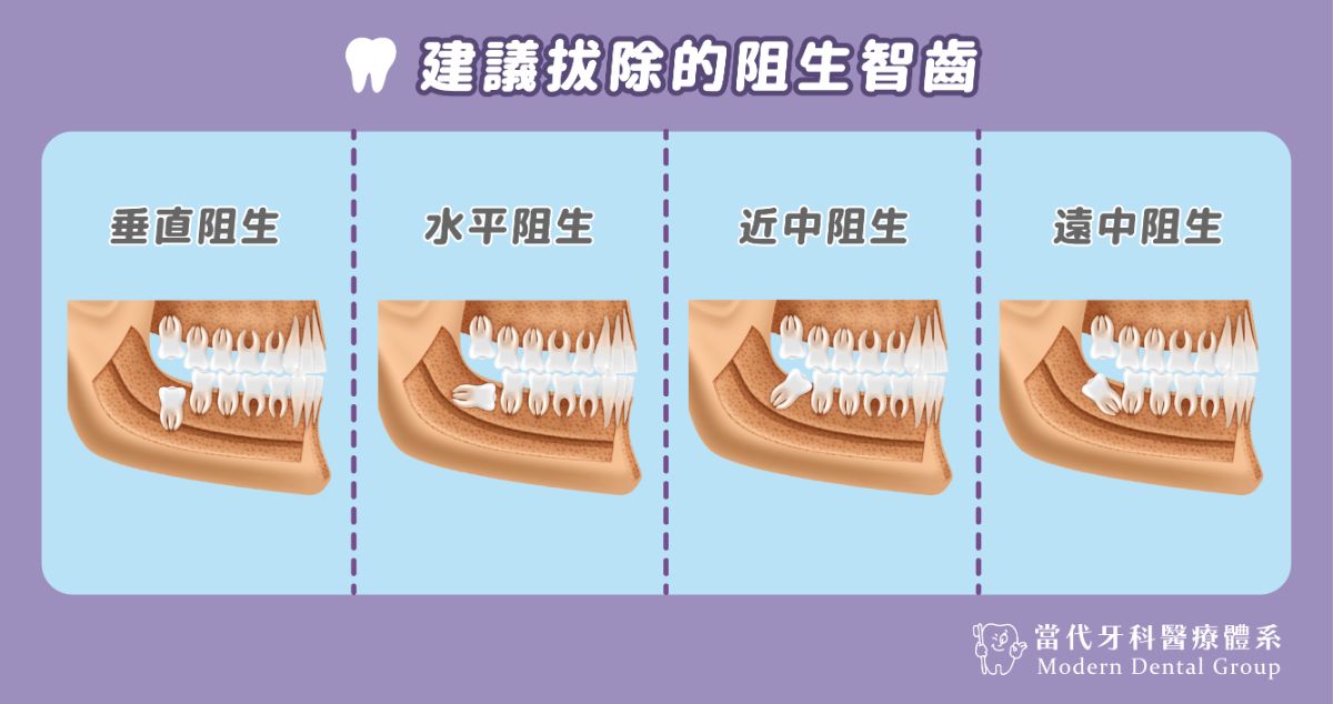 - 預防勝於治療,拔除阻生智齒的時間應該在還沒產生問題前,儘早諮詢專科醫師評估拔除。